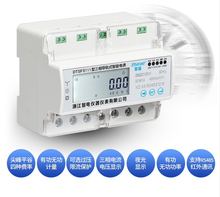三相導(dǎo)軌式多費(fèi)率電能表DTSF6111-7系我公司采用微電子技術(shù)計(jì)量電能,采用進(jìn)口集成電路,應(yīng)用數(shù)字采樣處理技術(shù)及SMT工藝等先進(jìn)技術(shù)研制開發(fā)的電子式電能表。能直測(cè)量電能計(jì)量中正向有功電能,7位LCD顯示器顯示有功用電量,具有可靠性好、體積小、重量輕、外表美觀、工藝先進(jìn)、35mmDIN標(biāo)準(zhǔn)導(dǎo)軌式安裝等特點(diǎn):并具有良好的抗電磁干擾、低自耗節(jié)電、精度高、高過(guò)載、穩(wěn)定性強(qiáng)、防竊電、壽命長(zhǎng),液晶屏幕上可顯示當(dāng)前總電量,無(wú)功電量,尖峰平谷的電量,電流,電壓,功率,功率因素,頻率,支持RS485 DL/645--2007或MODBUS通訊規(guī)約。